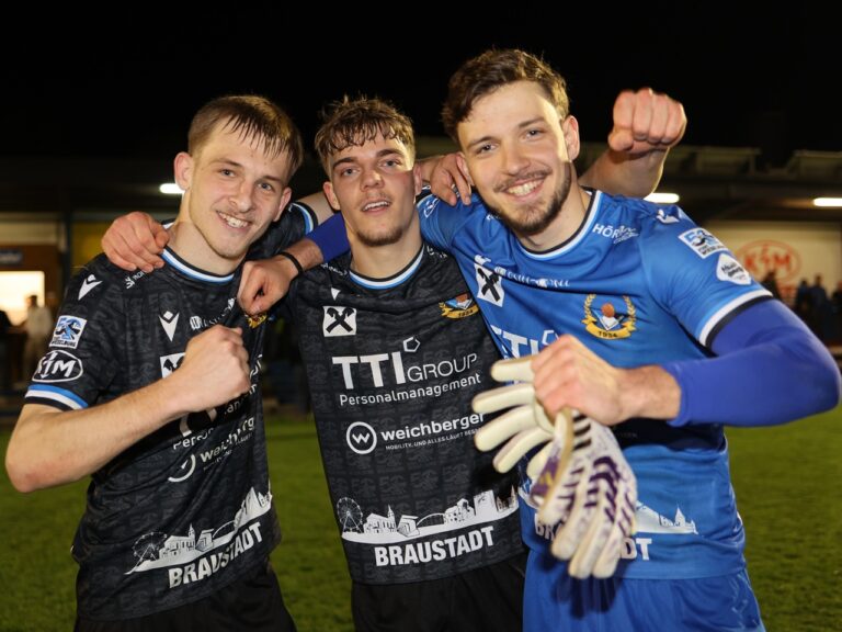 Glanztat der SCW-Kicker: Torschütze Marcel Doppler, Marvin Schimany und Superkeeper Jonas Maurer (v.l.).