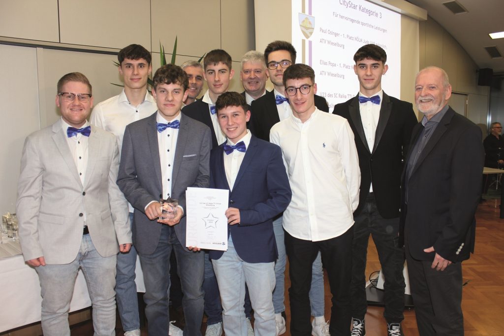 FOTO von links: Sektionsleiter Julian Schobersberger, Fabian Pilz, Elias Köberl, Trainer Markus Wippl, Jakob Schiefer, Florian Vorlaufer, BGM Dr. Josef Leitner, Manuel Sonnleitner, Lukas Teufl, Raphael Roth, Präsident Mag. Günther Leichtfried;