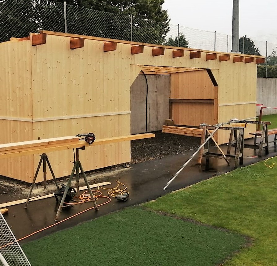 Nach der Fertigstellung der Holzbau-Winkler-Spielerbänke wurde das nächste Projekt in Angriff genommen: ein Gerätehaus.