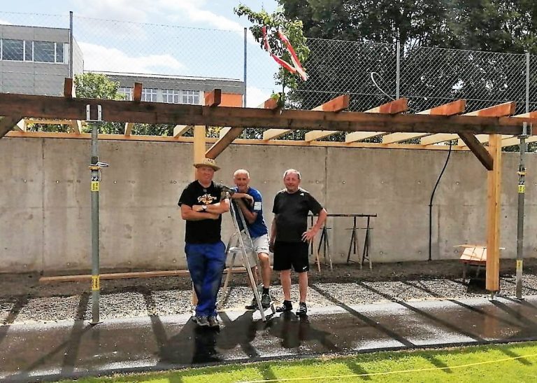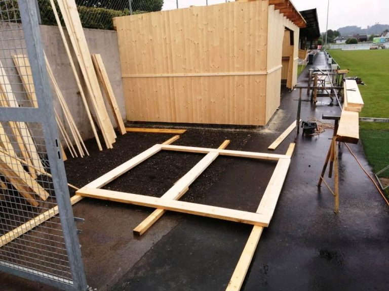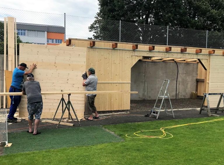Nach der Fertigstellung der Holzbau-Winkler-Spielerbänke wurde das nächste Projekt in Angriff genommen: ein Gerätehaus.