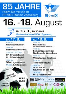 Feiern Sie mit uns in der HPYBET-Arena 85 JAHRE SC Wieselburg vom 16. bis 18. August 2019