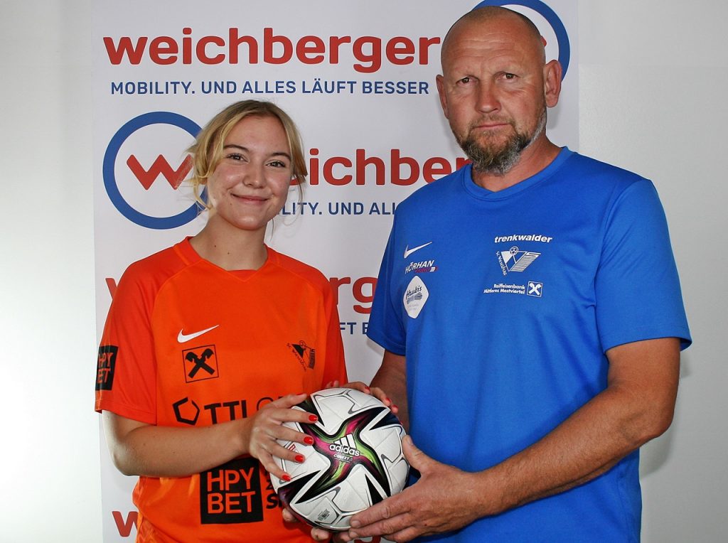 Coach Thomas Wagner (rechts) stellt den nächten Neuzugang für die kommende Saison vor: Olivia Rank könnte als Investition für die Zukunft gesehen werden. Die bald 18-Jährige kommt vom SV Erlauf.