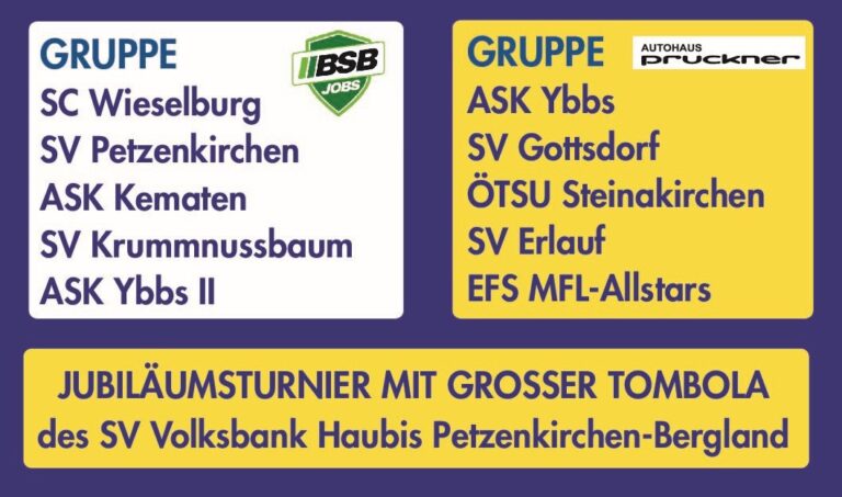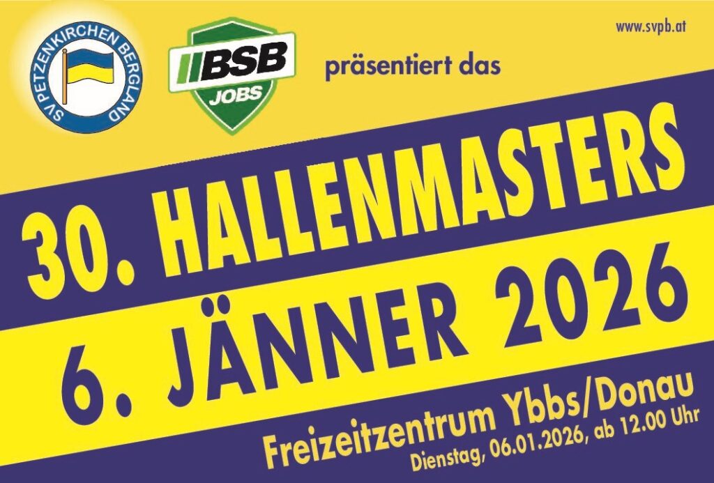 Am 6. Jänner 2026 findet im Ybbser Freizeitzentrum bereits zum 30. mal das traditionelle BSB Personalservice Hallenmasters des SV Volksbank Haubis Petzenkirchen Bergland statt. Der Dreikönigstag verspricht wieder mitreißende Wettkämpfe, wenn zehn Teams in zwei spannenden Gruppen um den begehrten Titel des Masters kämpfen. Natürlich gibt es auch wieder eine große Tombola!