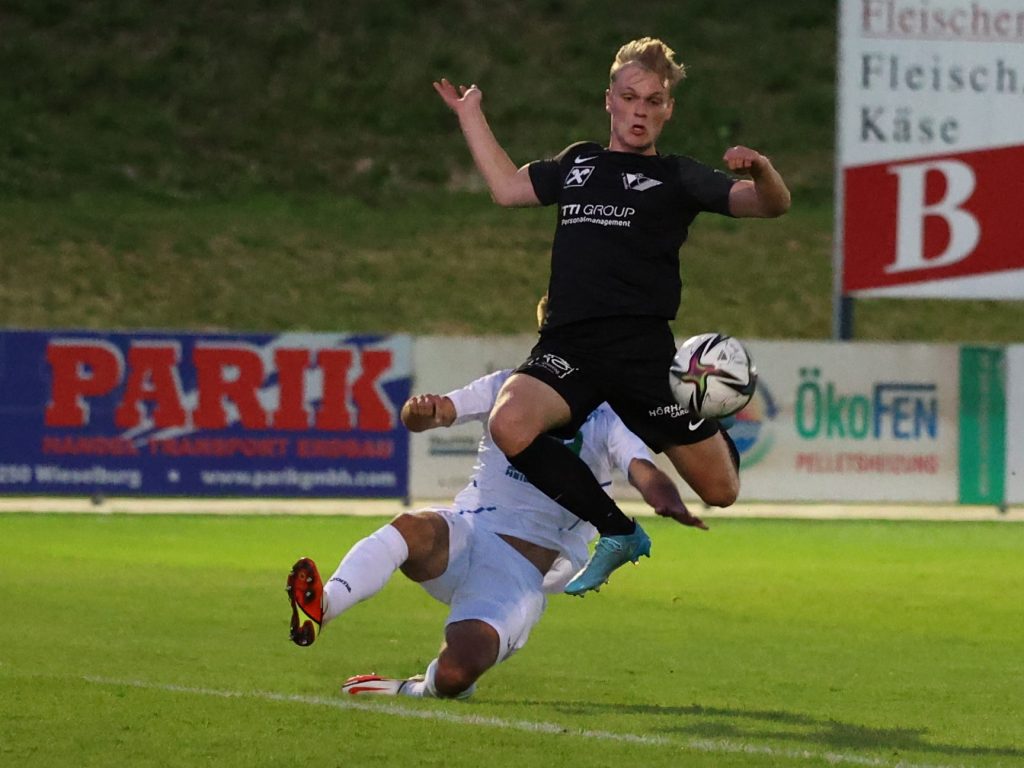 Hinterberger (r.) löst den Knoten, erzielt die Führung kurz vor der Pause (37.).